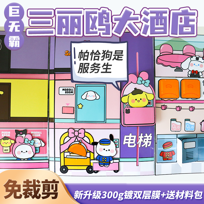 免裁剪三丽鸥大酒店城堡巨无霸女孩安静书新款 diy玩具豪华大别墅