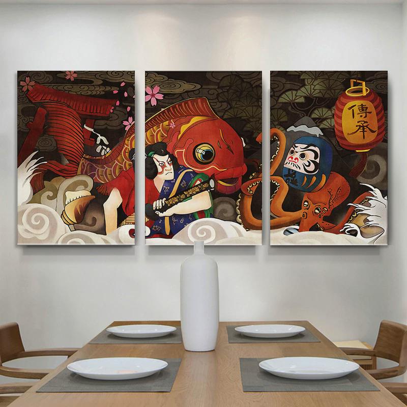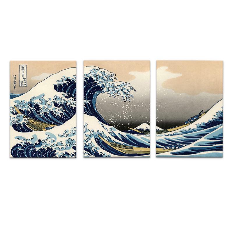 神奈川冲浪里浮世绘原木风海浪挂画民宿酒店日式 饰画 壁画客厅装