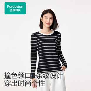 新款 T恤2025年秋季 全棉时代女士长袖 针织打底秋衣条 双11预售