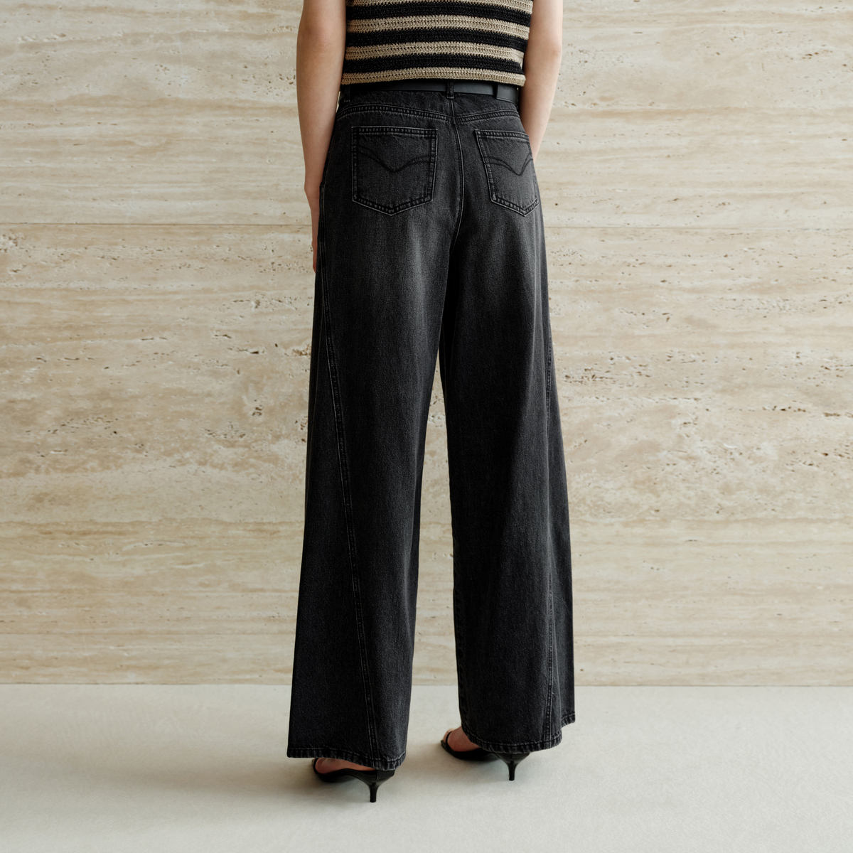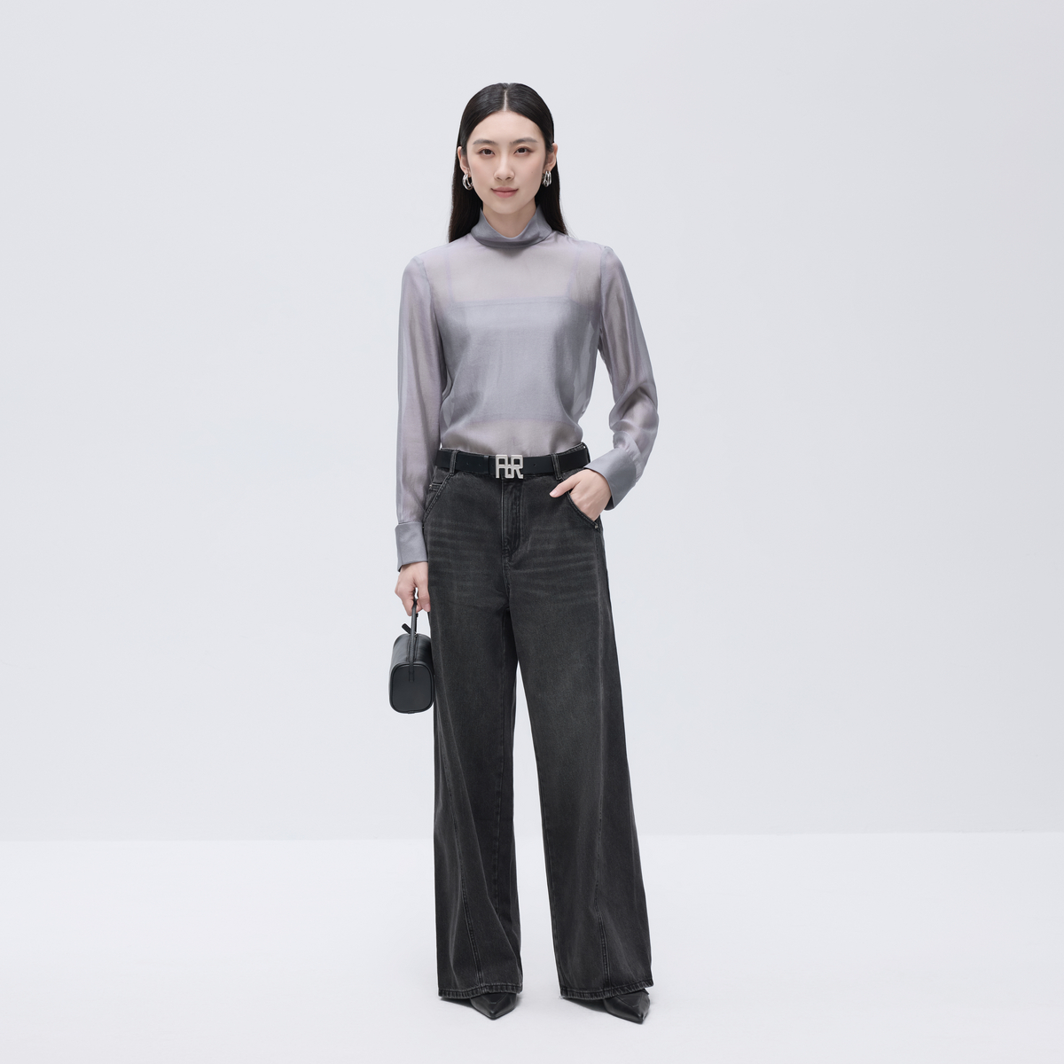 艾诺丝雅诗 女秋40713245 100%新疆棉复古宽松高腰直筒阔腿牛仔裤