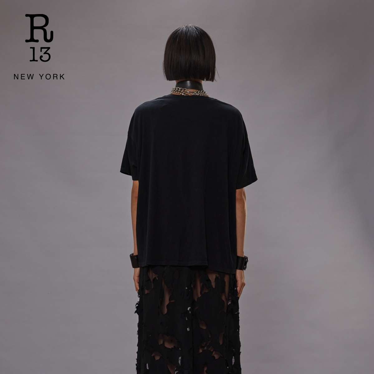 宽松街头手工印花短袖 2025秋冬系列 R13 T恤男女同款 明星同款