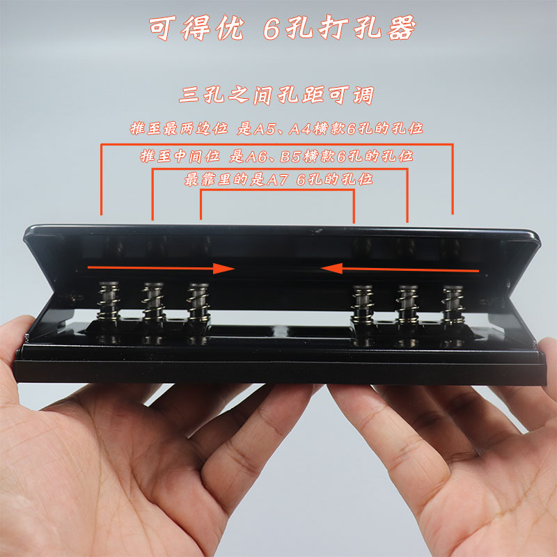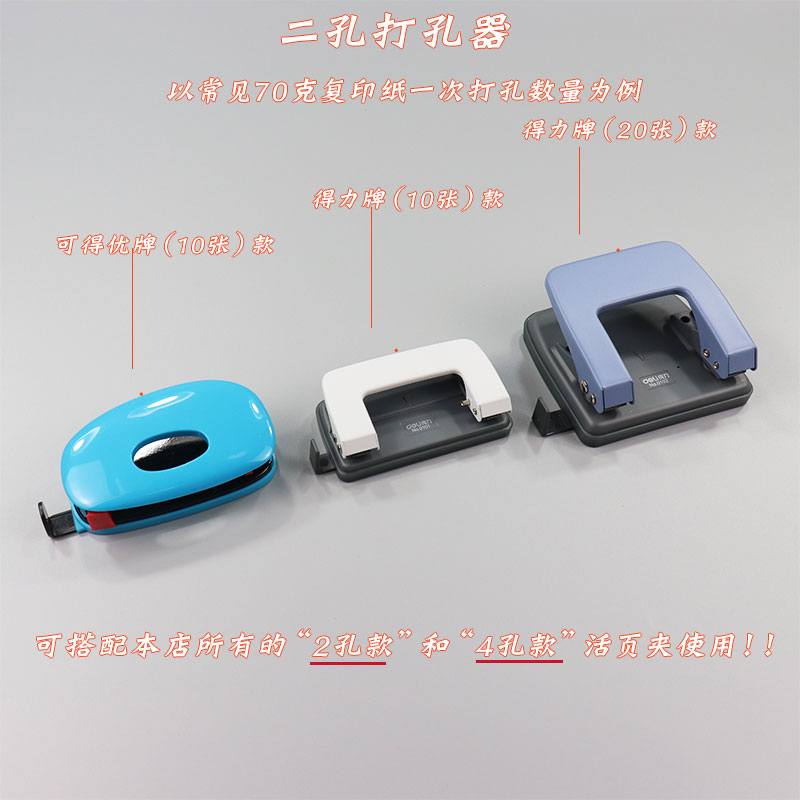 打孔器活页夹手账本配件装 订单孔二孔3孔4孔6孔多孔便携文具办公圆孔得力打孔10张A4打洞器打孔机可调节孔距