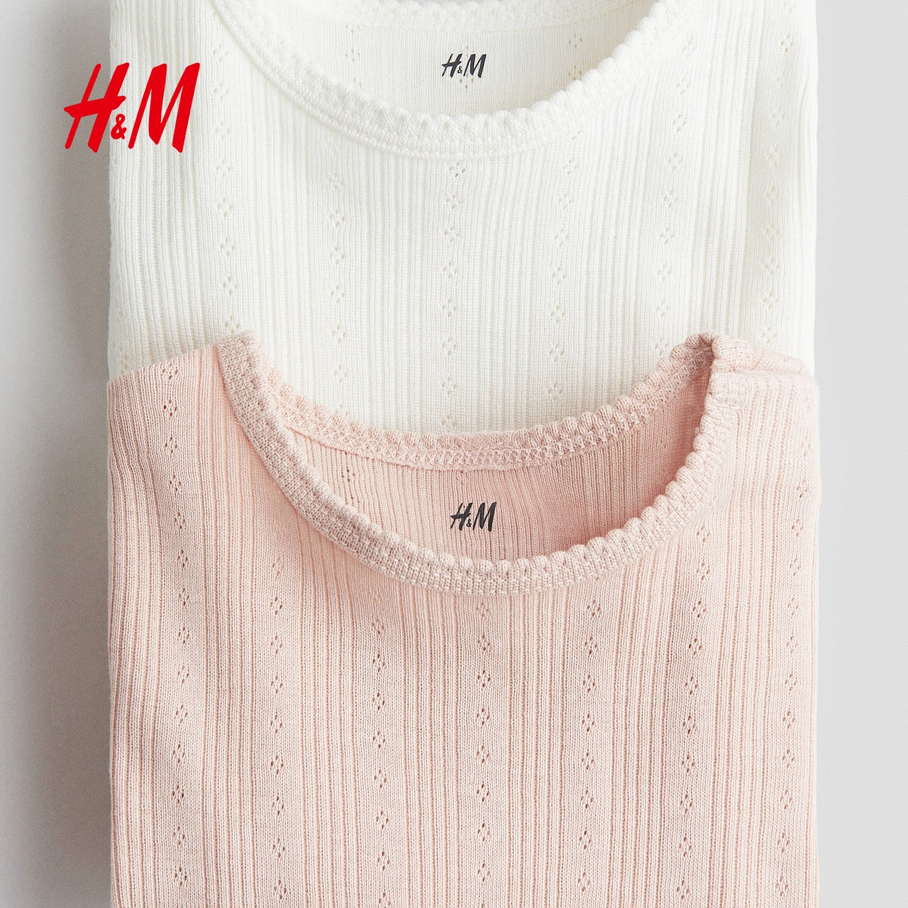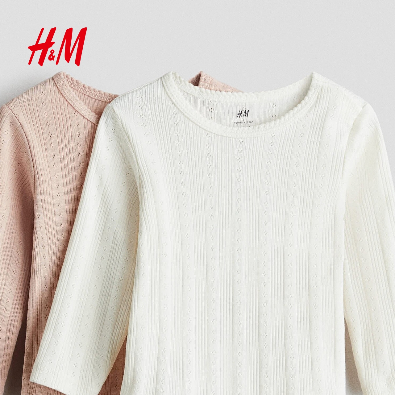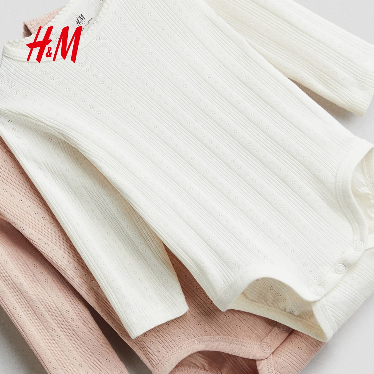 舒柔信封领长袖 HM童装 新款 2025年秋季 哈衣1110252 女婴连身衣2件装