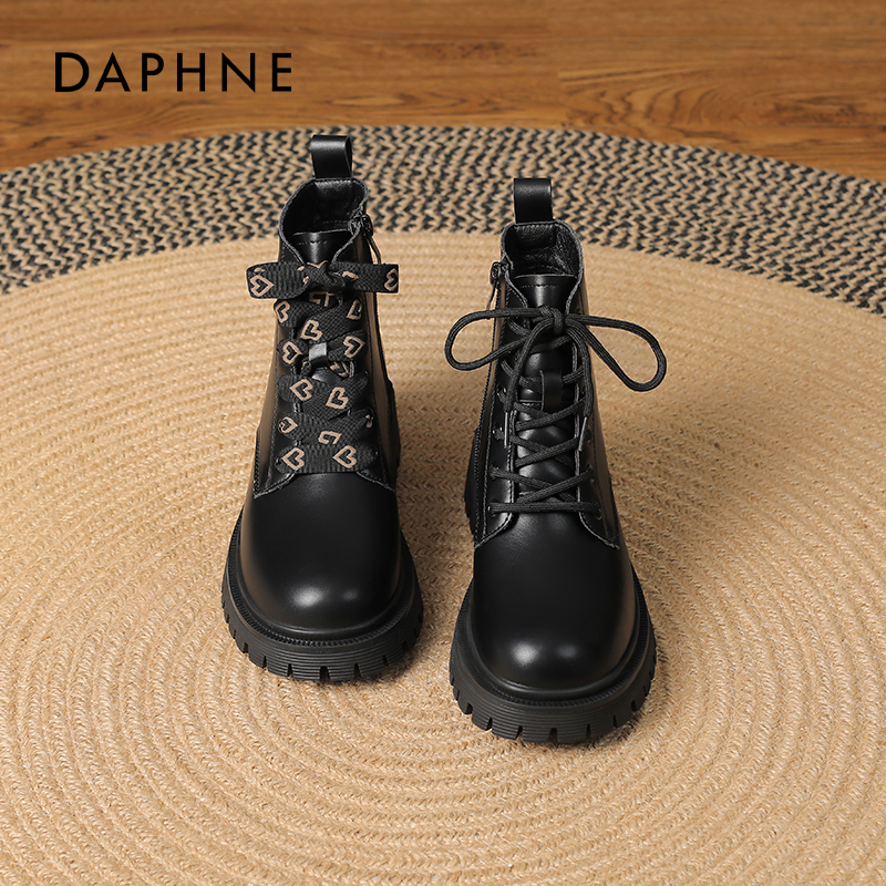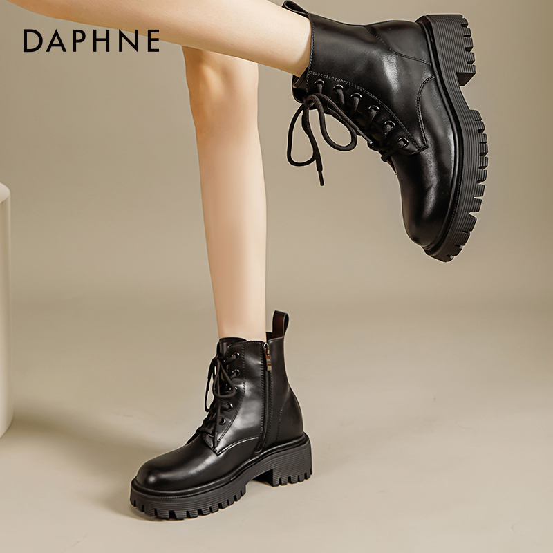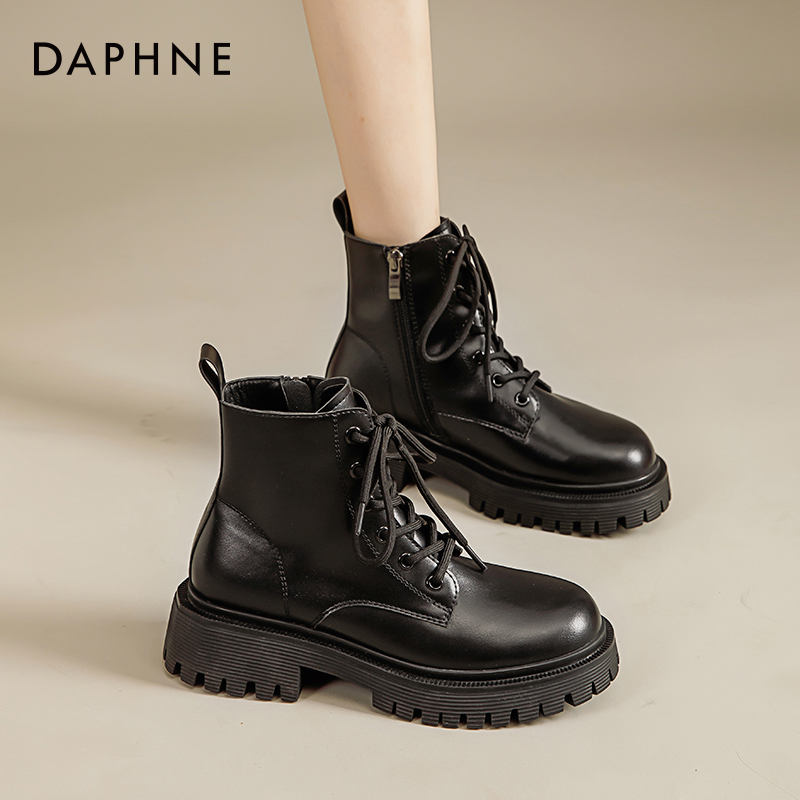 达芙妮马丁靴女款 复古百搭 早秋厚底黑色英伦高级感短靴子2025新款