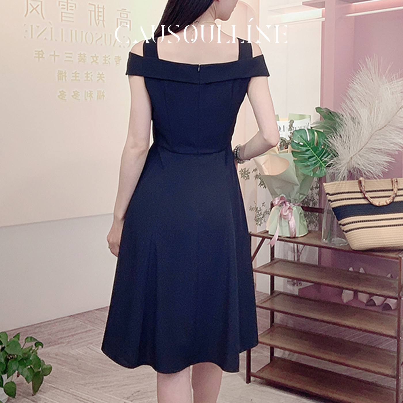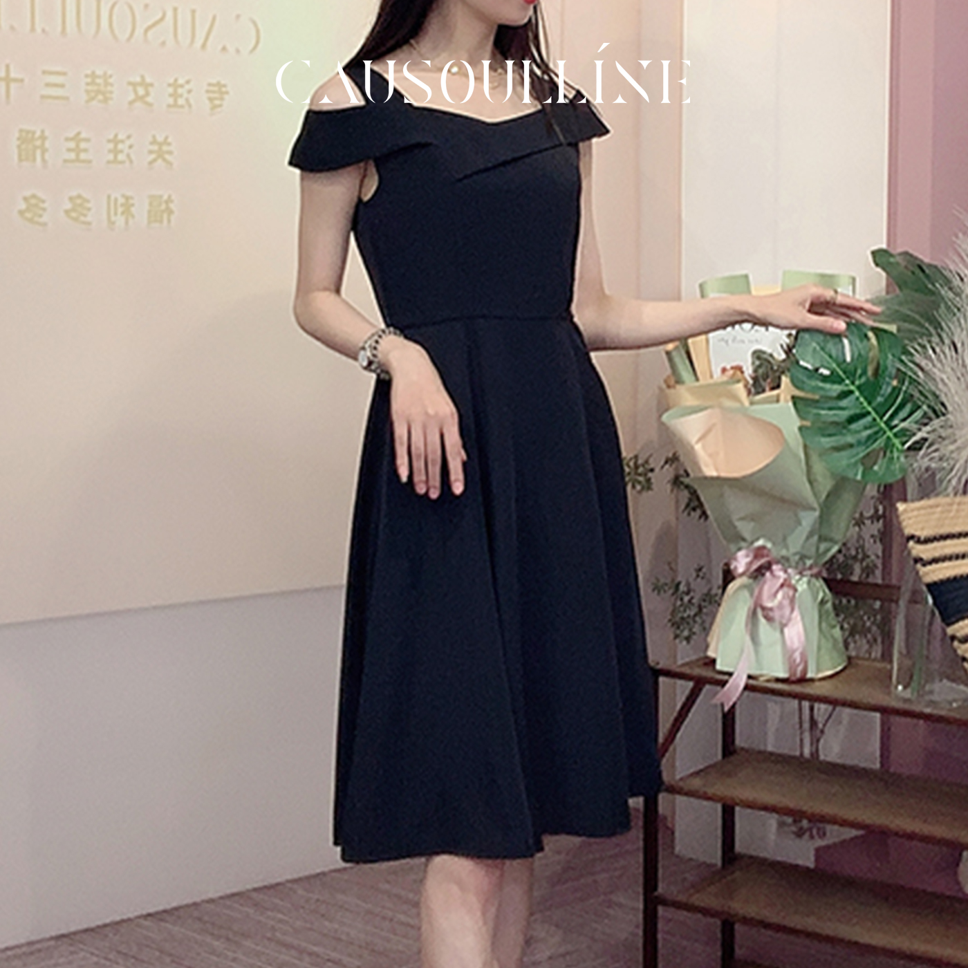 高斯雪岚2025夏新法式 露肩一字连衣裙名媛气质显瘦礼服赫本风女裙
