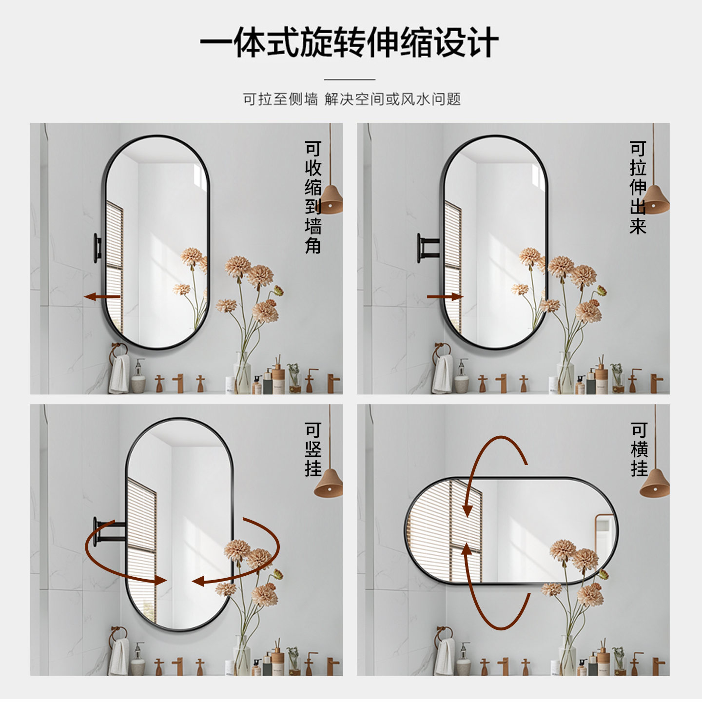 可旋转风水化妆镜壁挂折叠伸缩镜子卫生间挂墙式 洗手间浴室镜防爆