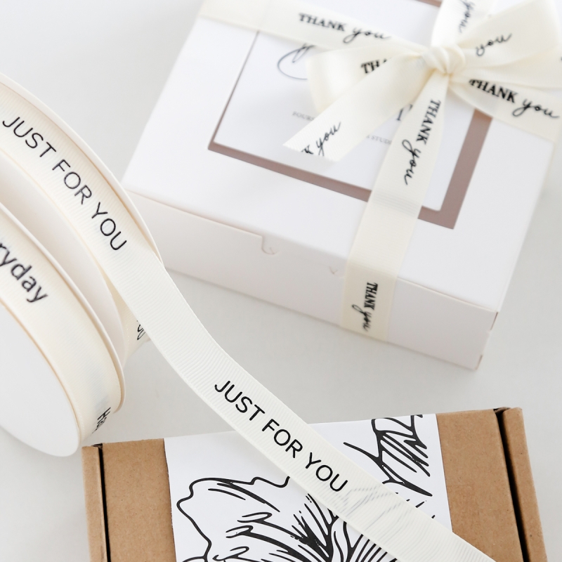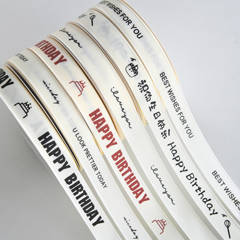 丝带缎带生日蛋糕盒装 彩带英文 饰用罗纹米白色绑带鲜花束礼物包装