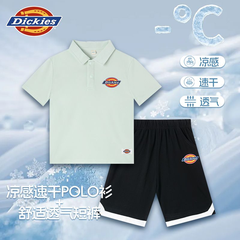 女童穿搭男童凉感套装 小童套装 印花 短裤 Dickies儿童彩标polo衫