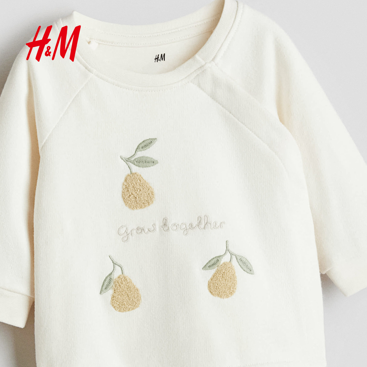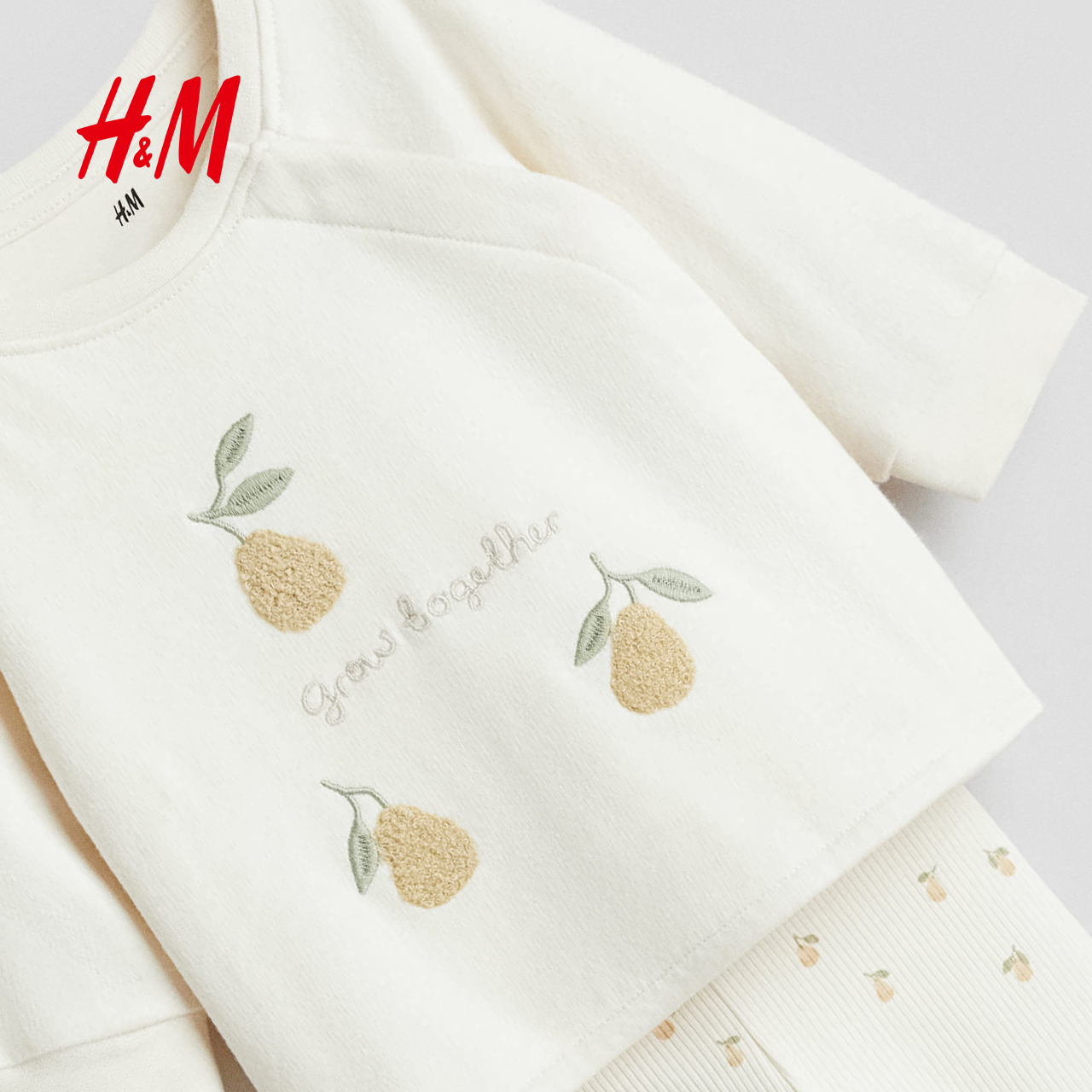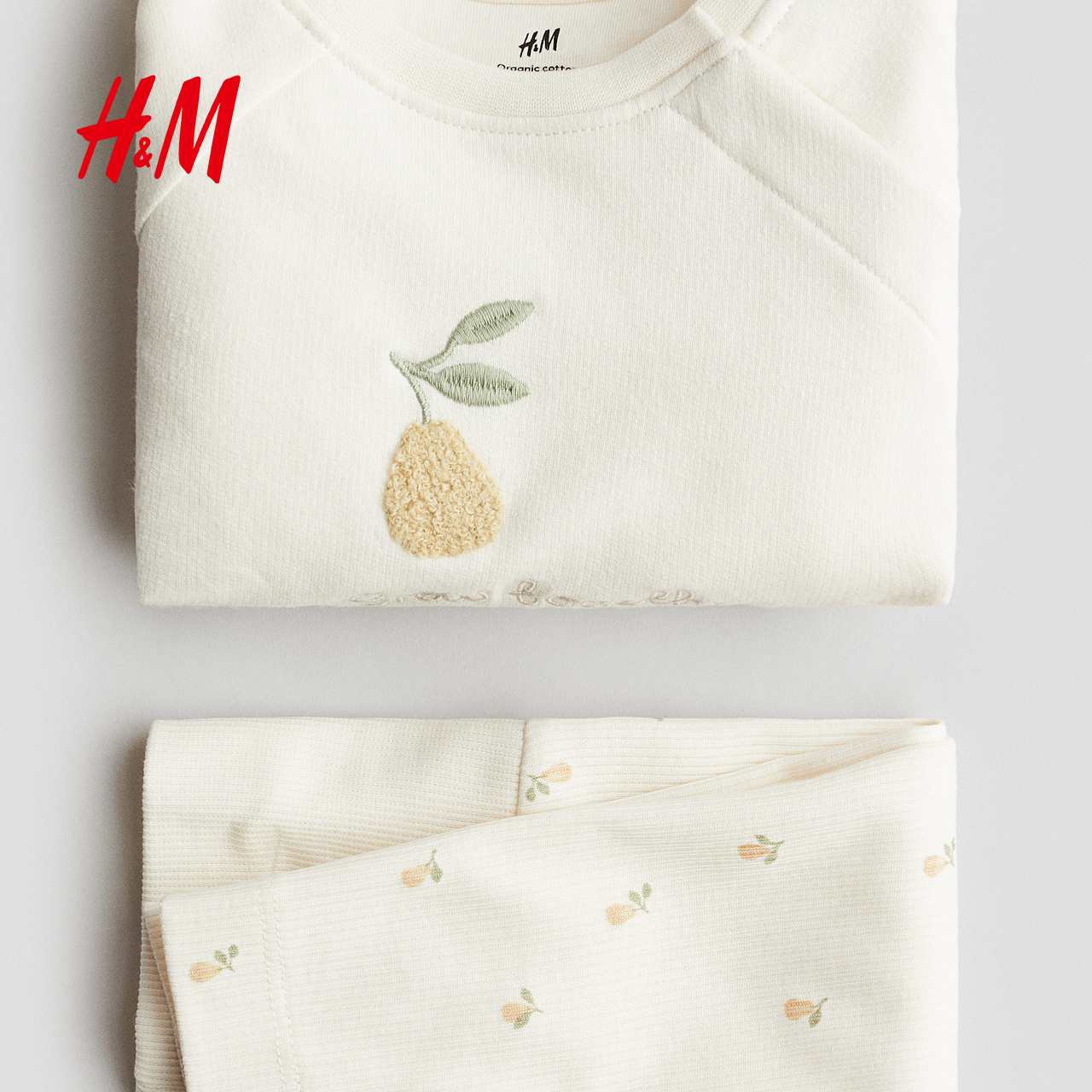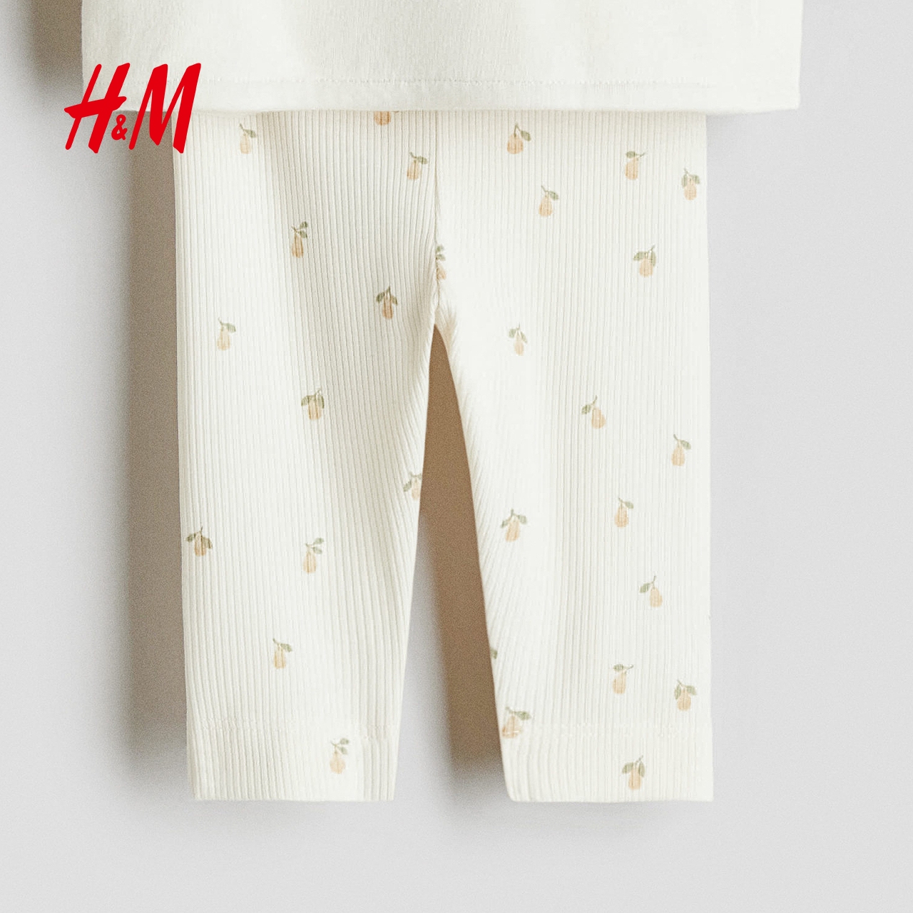 印花上衣条纹长裤 HM童装 2025新款 2件式 1167835 新生儿男婴女婴套装