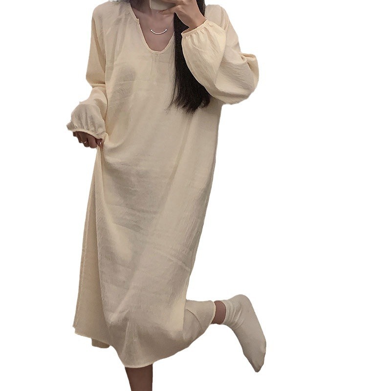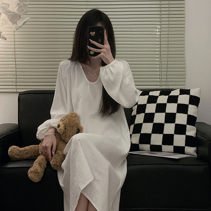 睡裙韩版 云朵棉长袖 慵懒风宽松家居服可外穿 新款 跨境睡衣女春秋季