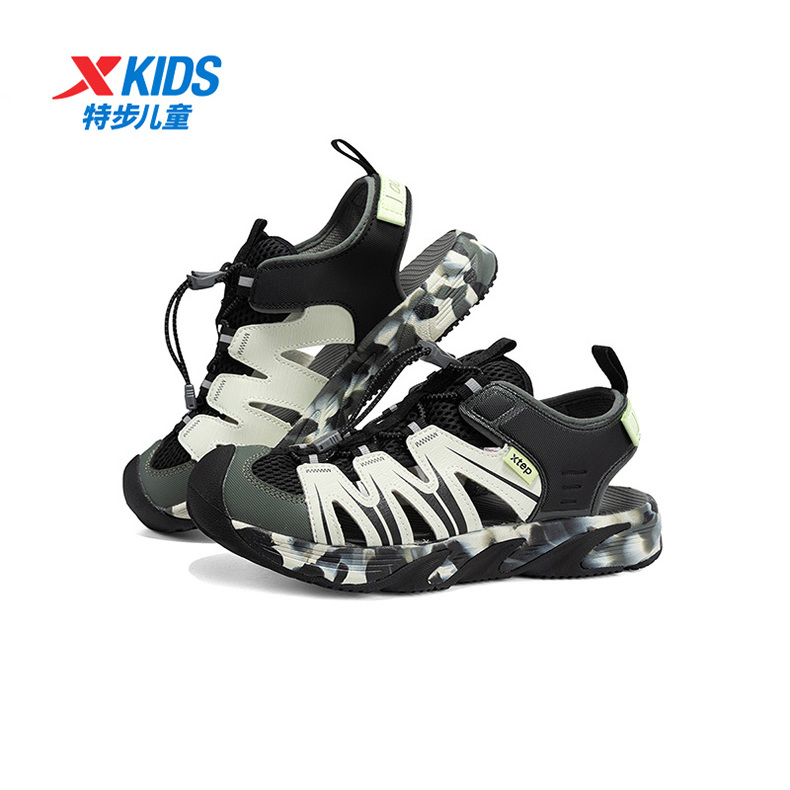 商场同款 新款 特步童鞋 夏季 中大童透气包头男童沙滩鞋 儿童凉鞋