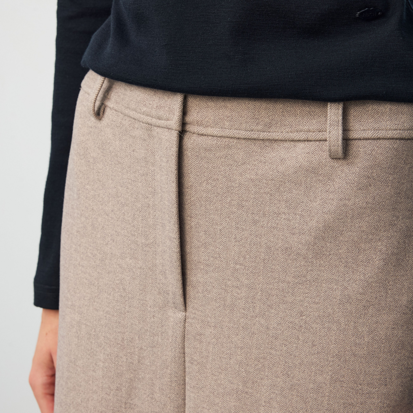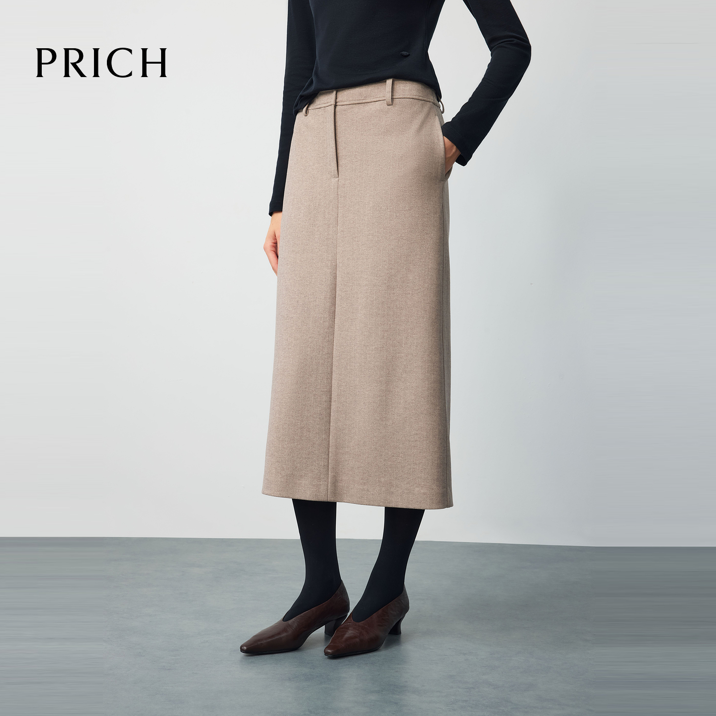 裙子女 中长款 PRICH时尚 简约人字纹提花磨毛直筒半身裙2025冬新款
