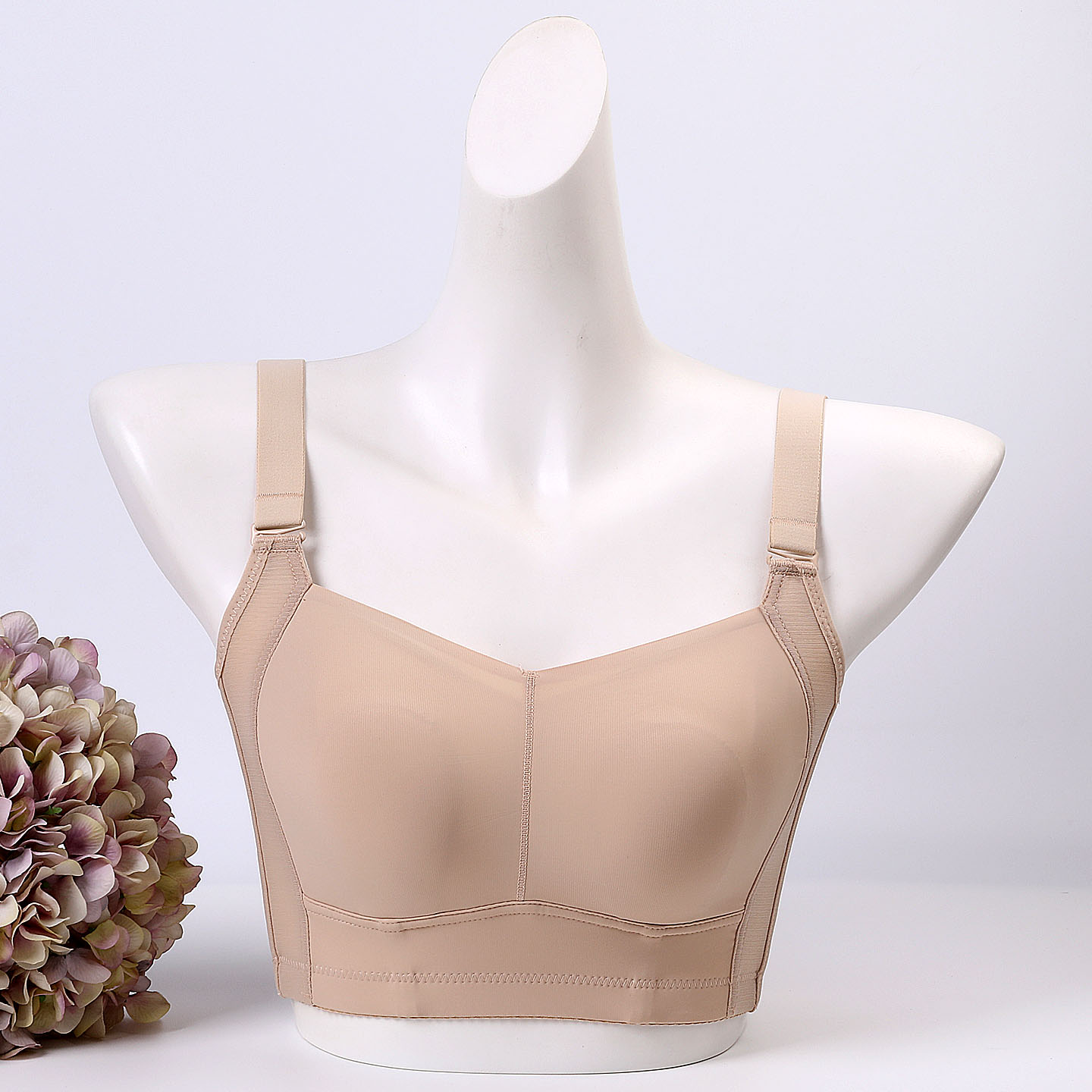 光面无痕调整型全罩杯女士内衣薄款 收副乳大胸显小显瘦防下垂文胸