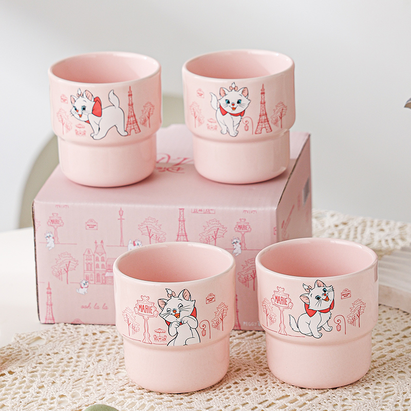 迪士尼爱心史迪奇波点叠叠杯高温烤花餐具可爱陶瓷杯早餐杯200ml