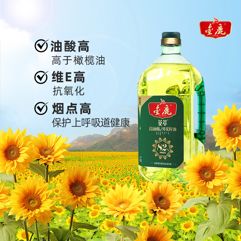 金鹿82%高油酸葵花籽油2.5L 5L压榨一级中国好粮油植物富含国货