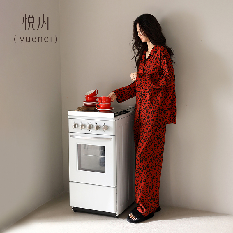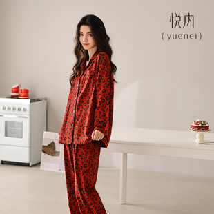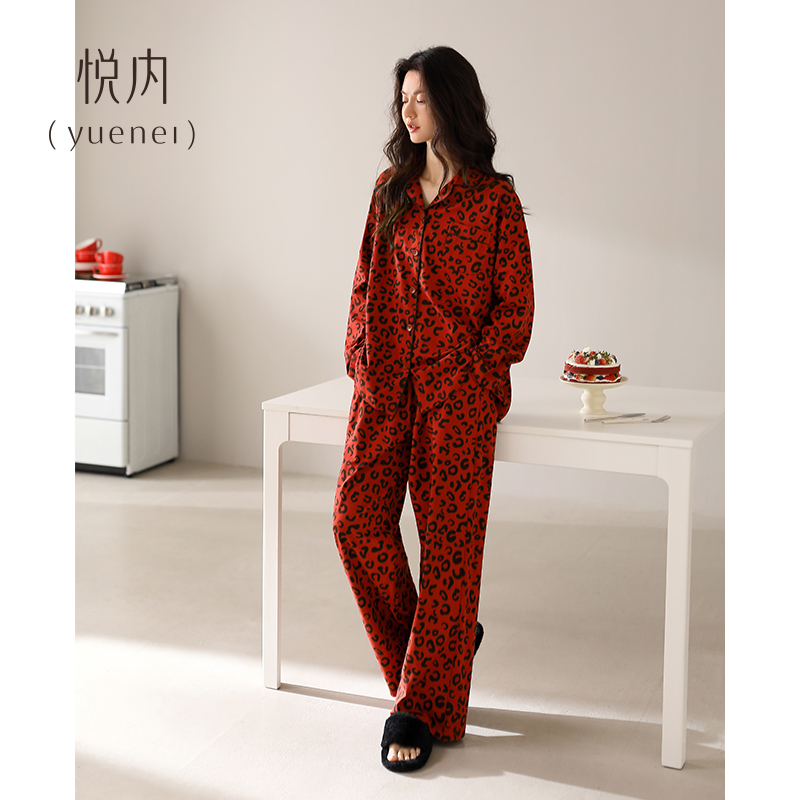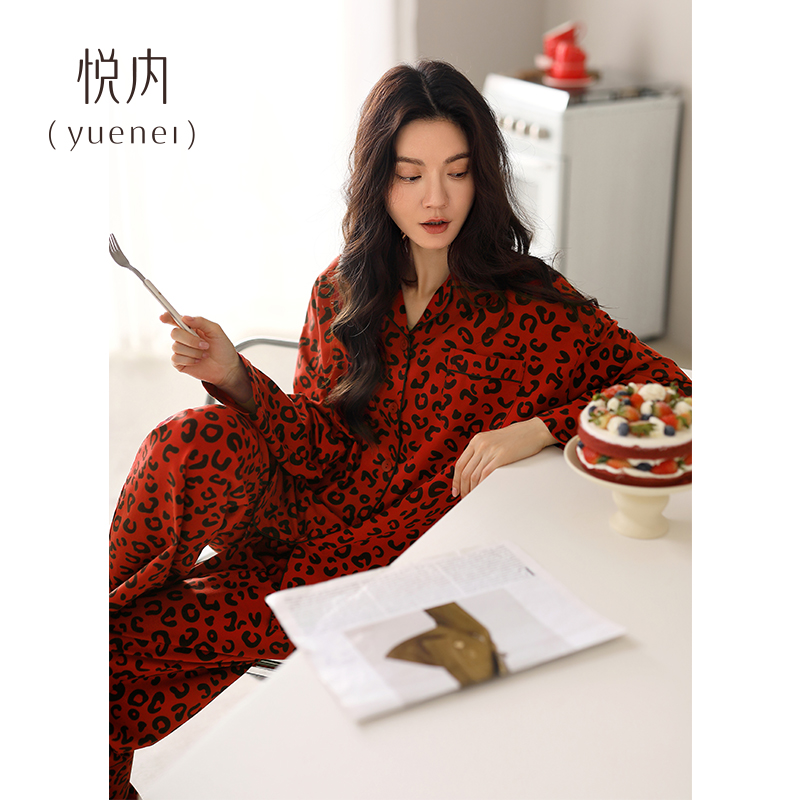 长袖 秋季 纯棉家居服高级感豹纹新年红色本命年 春秋款 悦内睡衣女款