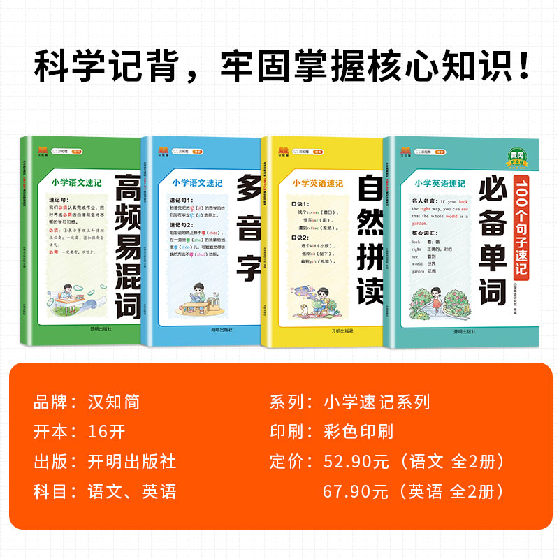 视频版 小学语文速记多音字高频易混词思维导图图解速记卡人教版 100个句子速记必备单词 汉知简小学英语速记100个口诀速记自然拼读
