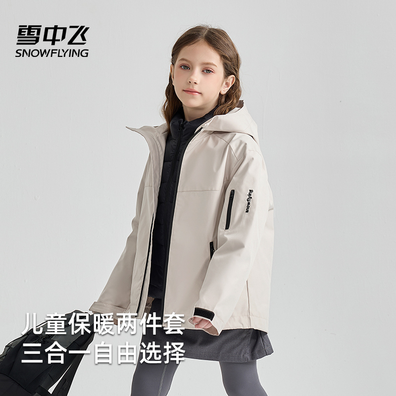 雪中飞儿童三合一冲锋外套男童女童2025新款 秋冬羽绒衣服加绒加厚