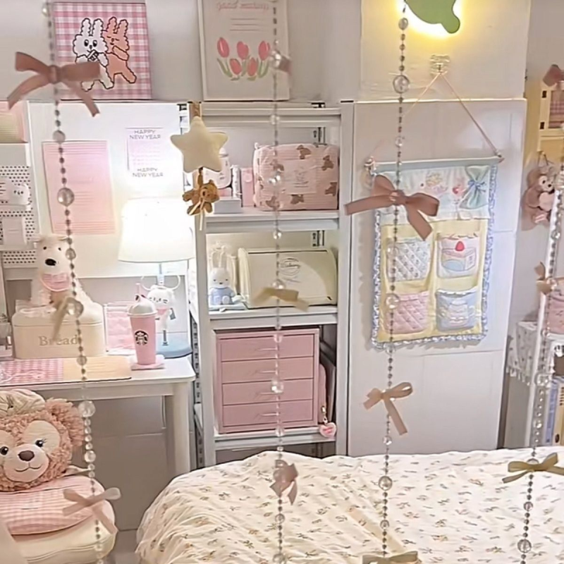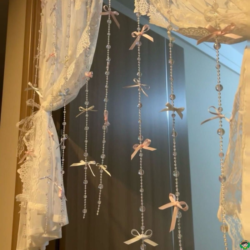 网红同款 饰少女心房间梦幻 可爱风蝴蝶结珠链门帘氛围卧室diy装