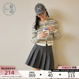 显瘦连帽打底衫 紫涵撞色条纹双拉链针织衫 学院风修身 新款 女春秋季