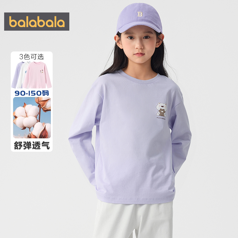 99元 t恤男童长袖 3件 儿童短袖 T恤女童上衣亲子装 巴拉巴拉童装