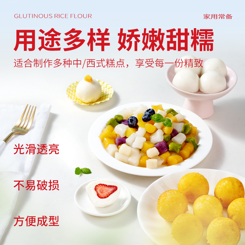 新良水磨糯米粉500g家用汤圆油炸糕南瓜饼雪媚娘糯米糍烘焙原料