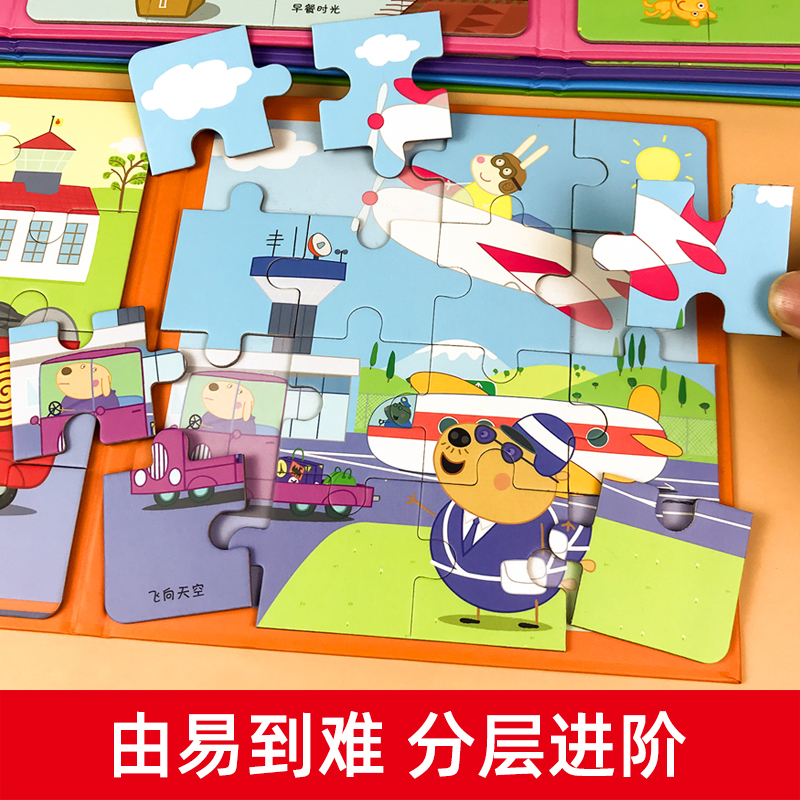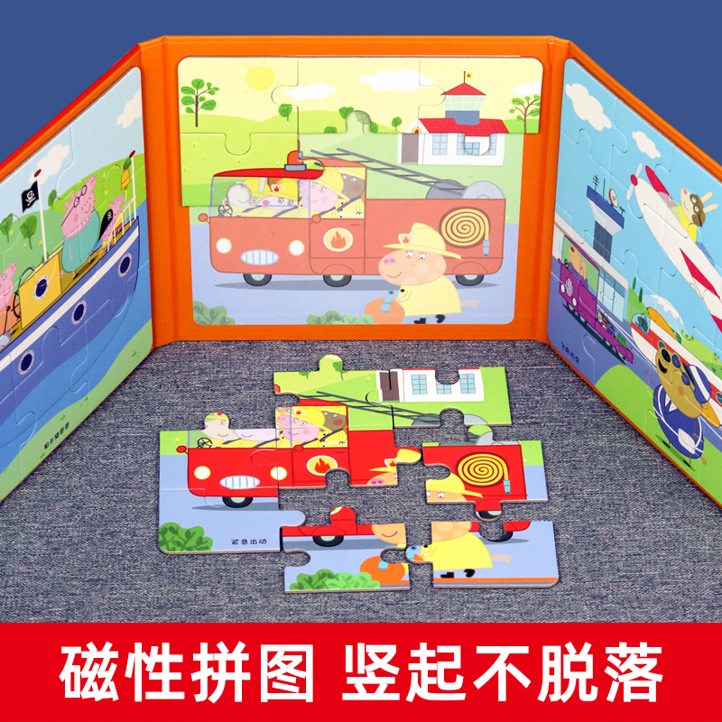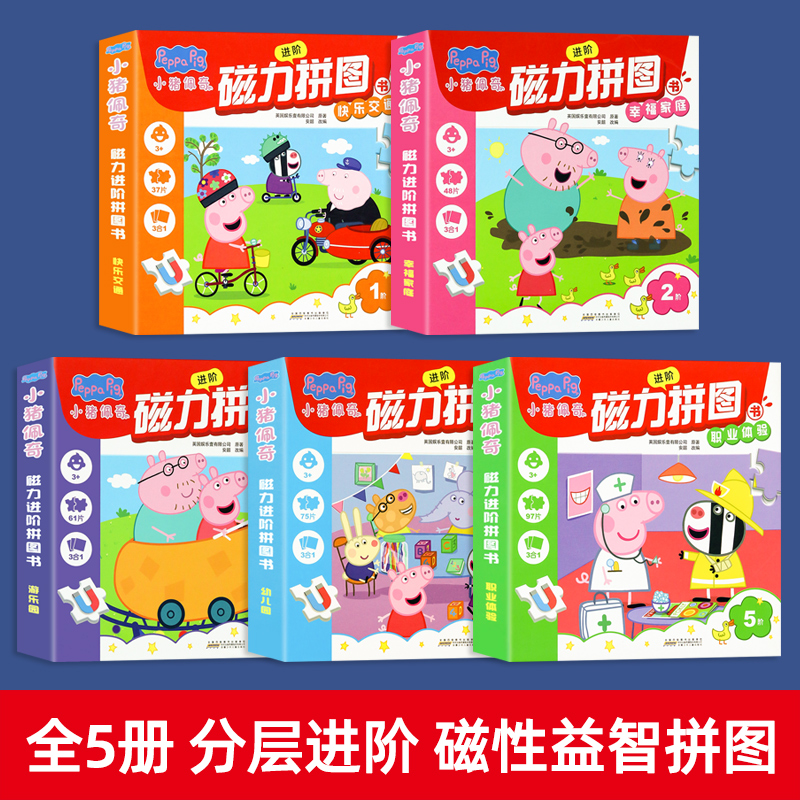 小猪佩奇磁力进阶拼图书1 6岁进阶拼图专注力训练益智玩具早教节日礼物绘本贴纸书幼儿园3 6岁益智 5阶儿童动脑早教玩具儿童0