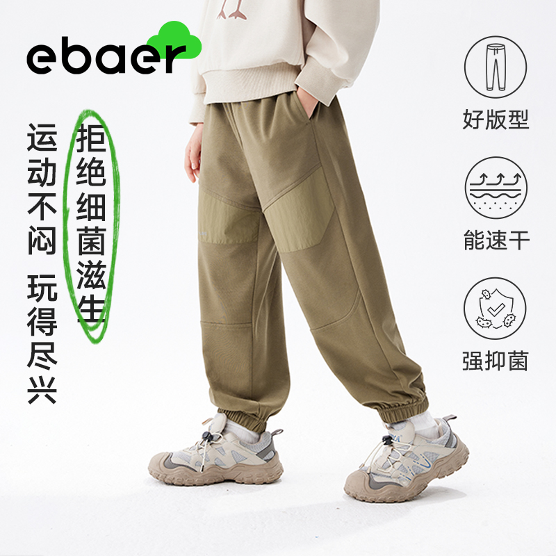 抑菌男童运动速干束脚裤 新款 2025春季 ebaer儿童针织长裤