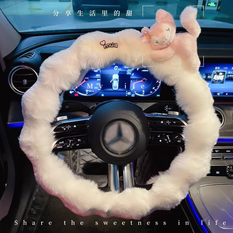 汽车方向盘套女神款 可爱毛绒保暖韩国卡通兔毛加热车用品把套 冬季