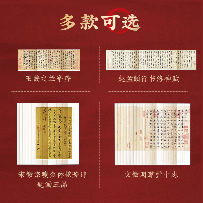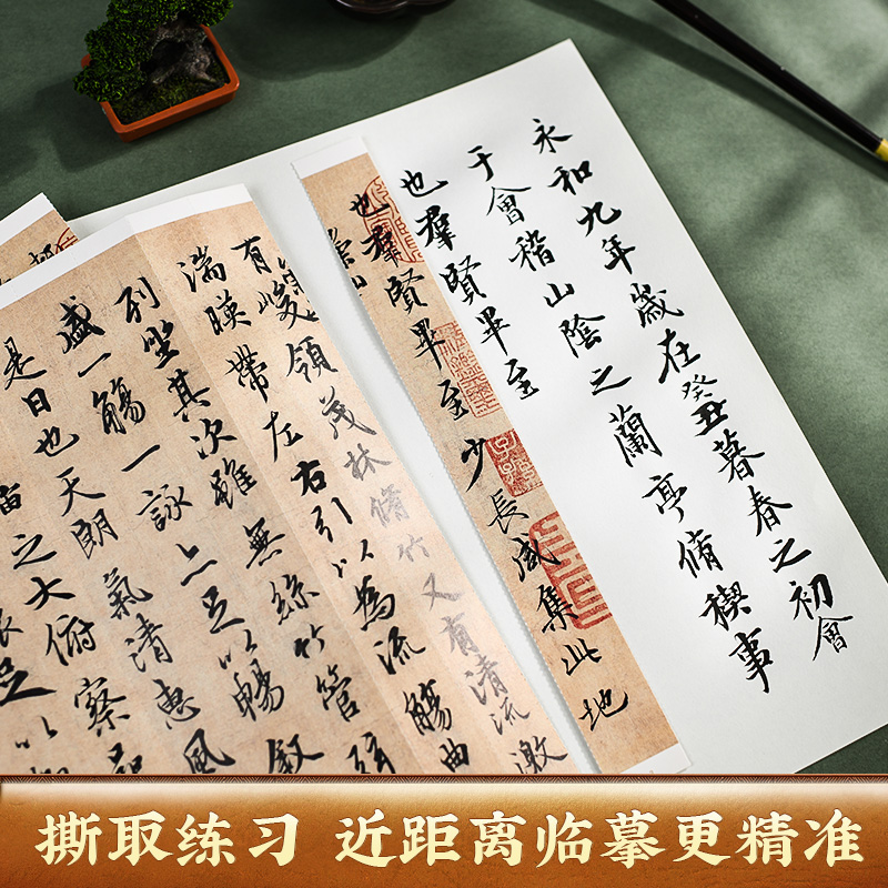 可撕取折叠版 近距离临摹字卡 长卷王羲之兰亭序 赵孟頫行书洛神赋 宋徽宗瘦金体秾芳诗题画三品 文徵明草堂十志 原帖通临范本