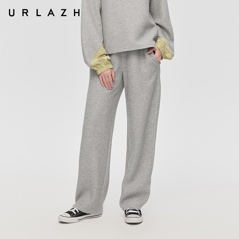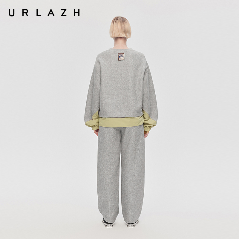 浅灰休闲宽松运动撞色拼接卫裤 新款 女 URLAZH有兰2025秋季 商场同款