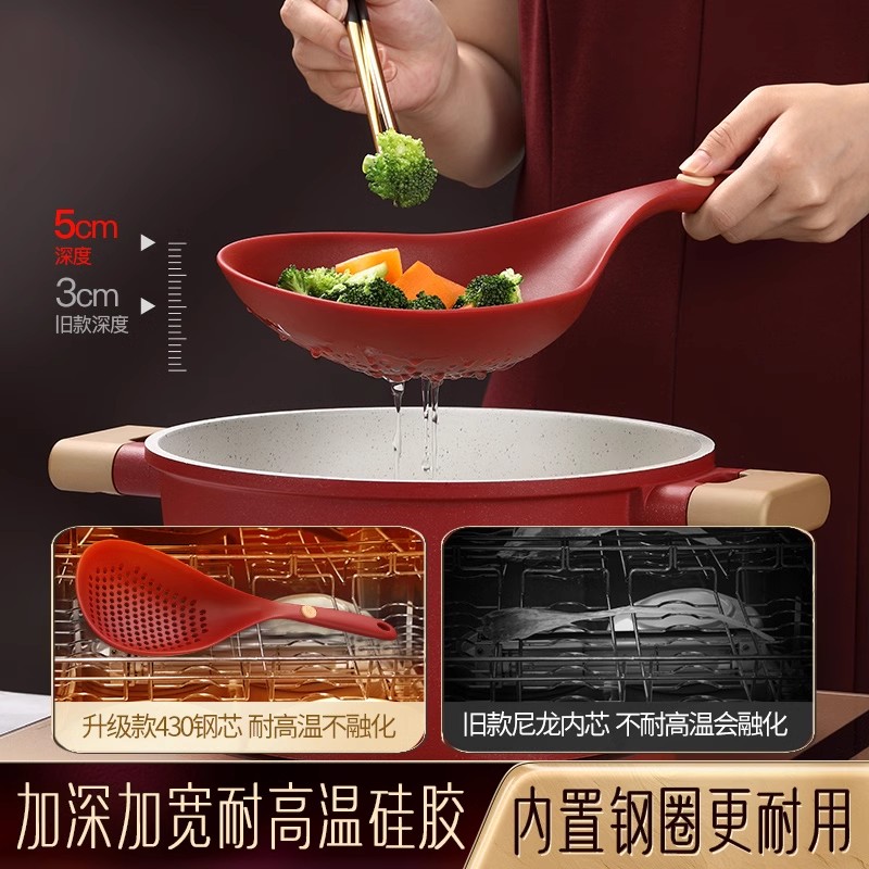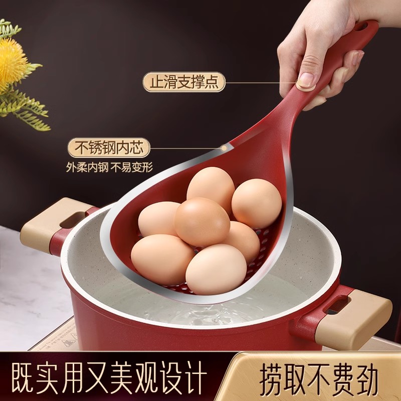不粘锅硅胶漏勺耐高温大捞勺家用捞面捞饺子馄饨滤勺焯水笊篱沥水