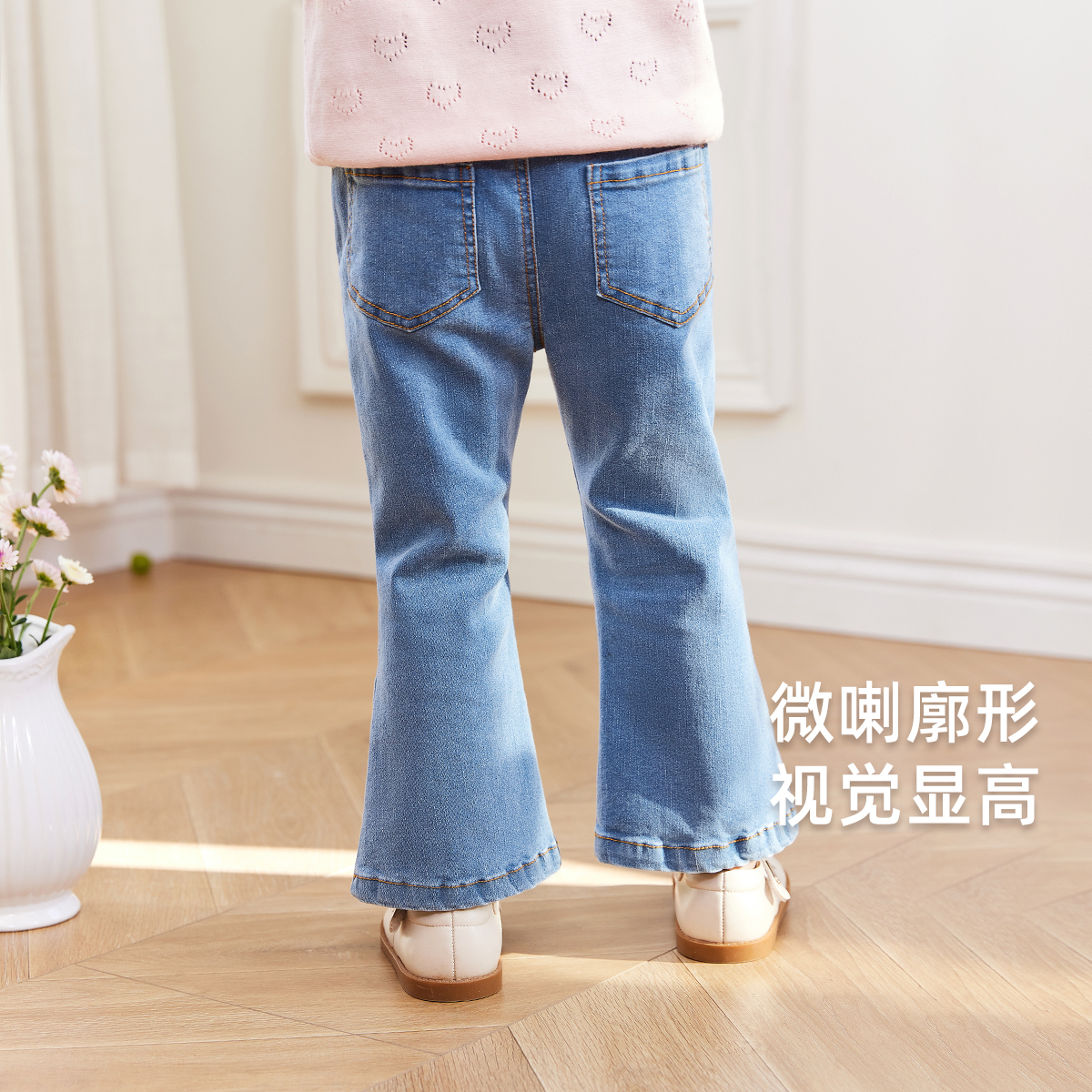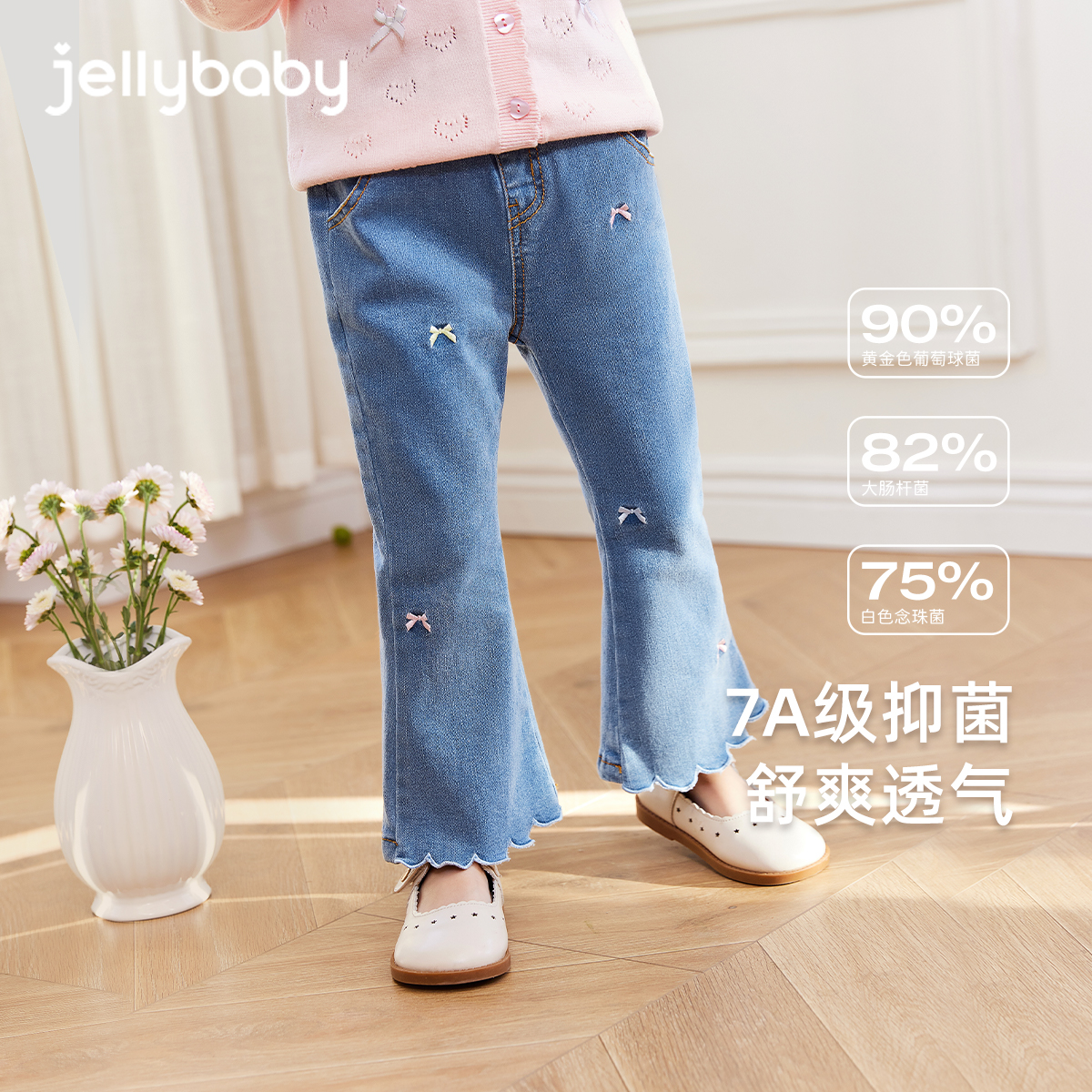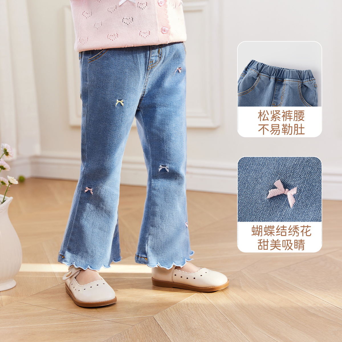 小童秋季 女童喇叭裤 甜美蝴蝶结长裤 宝宝儿童秋季 潮 牛仔裤 7A抑菌