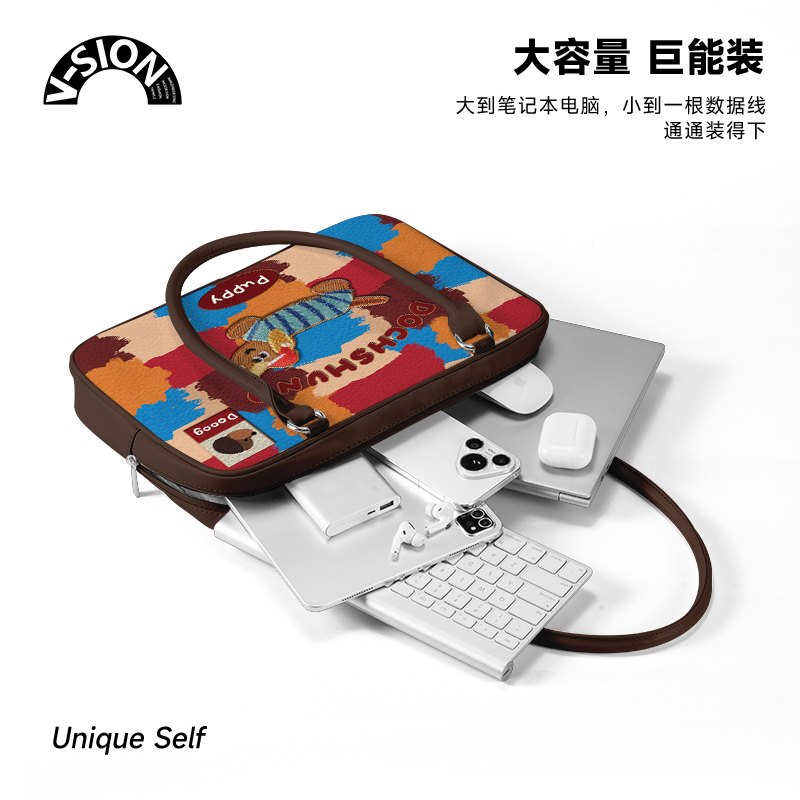 手提适用于苹果macbook15.6小新air13华为matebook联想14内胆包 SION卡通插画笔记本重磅托特电脑包女2024款