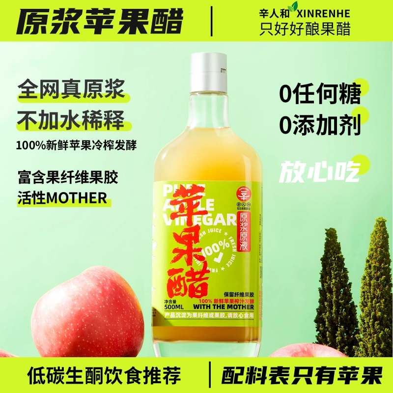 辛人和苹果醋原浆无糖型发酵型果醋0脂0热量山西水果醋纯苹果原醋