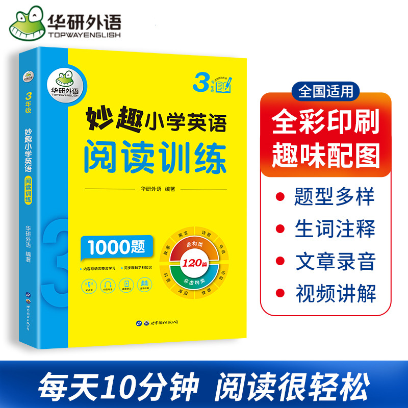 华研外语三年级上下册起点妙趣小学英语阅读理解120篇专项训练书 1000题每日一练同步练习听力专项训练新教材学习练习手册书籍