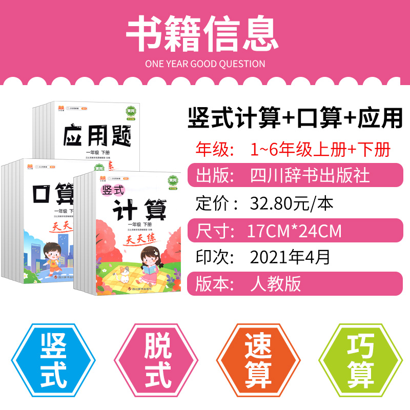 小学生口算题卡一年级二三四五六年级上下册竖式 计算练习天天练人教北师西师黄冈小学数学应用题解题技巧思维强化训练汉之简 脱式