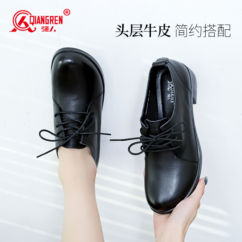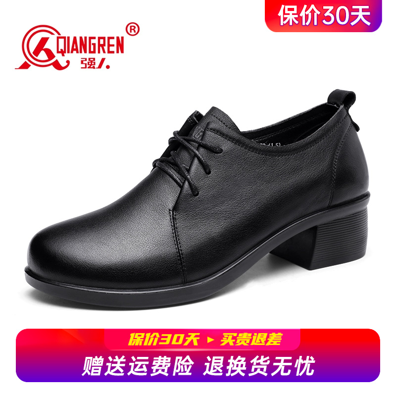 不累脚鞋 春秋真皮软底单鞋 职业工装 黑色粗跟高跟鞋 鞋 强人3515女鞋