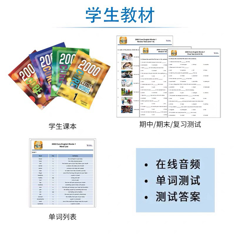 正版 适用英语单词词典赠音频答案 2000 Words 1级 English 2019新版 Core 小学英语单词教辅书 原版 常见词英语单词词典 进口