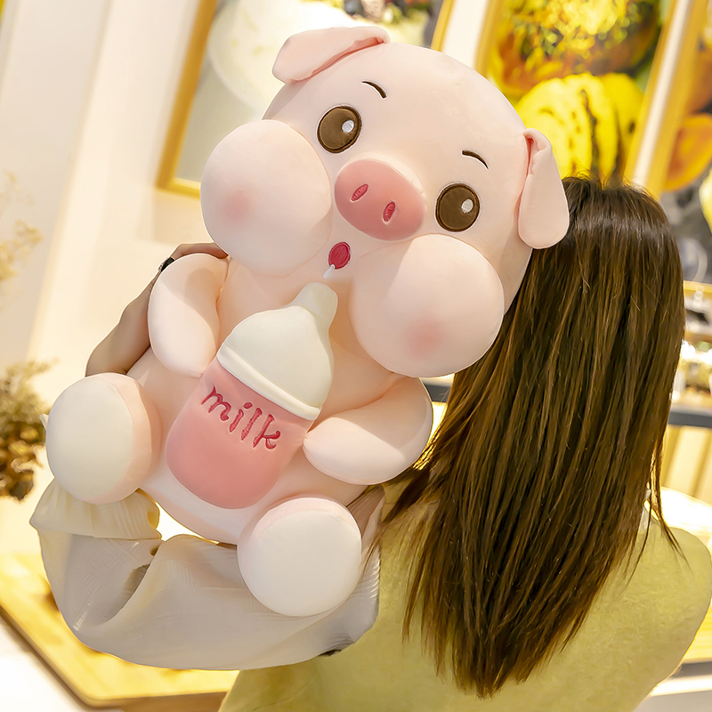 可爱奶瓶猪毛绒玩具睡觉抱枕小猪公仔布娃娃玩偶七夕情人节礼物女