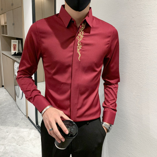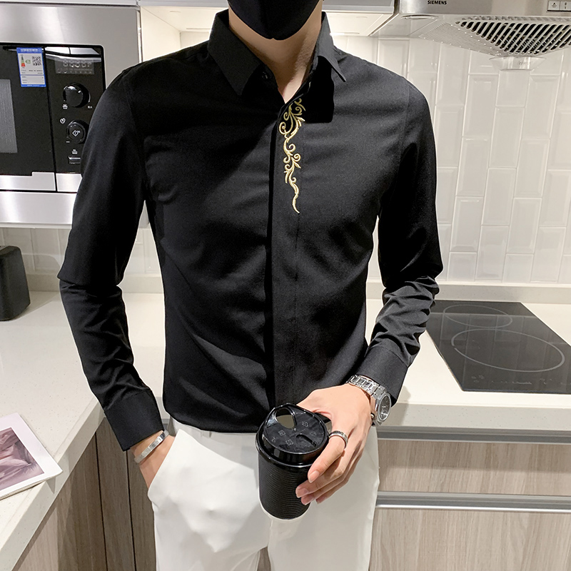 男衬衫 ins刺绣潮流休闲时尚 长袖 发型师百搭个性 帅气衬衣 修身 秋季
