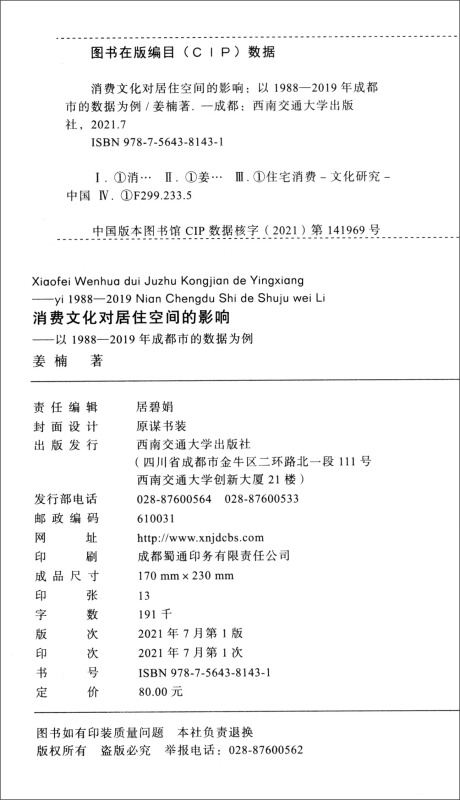 数据为例 2019年成都市 姜横 影响——以1988 消费文化对居住空间