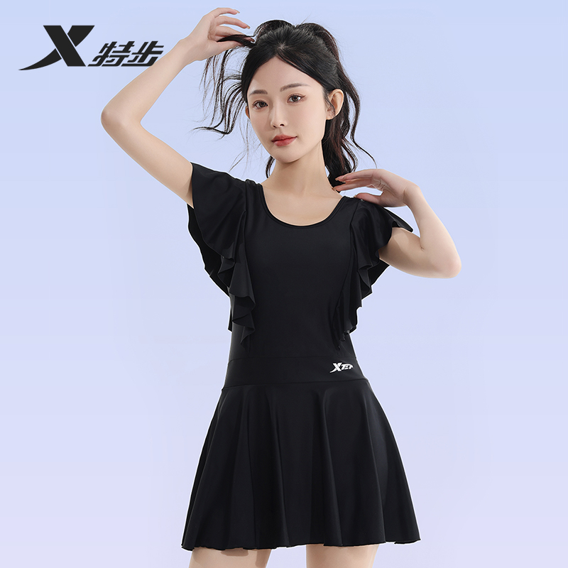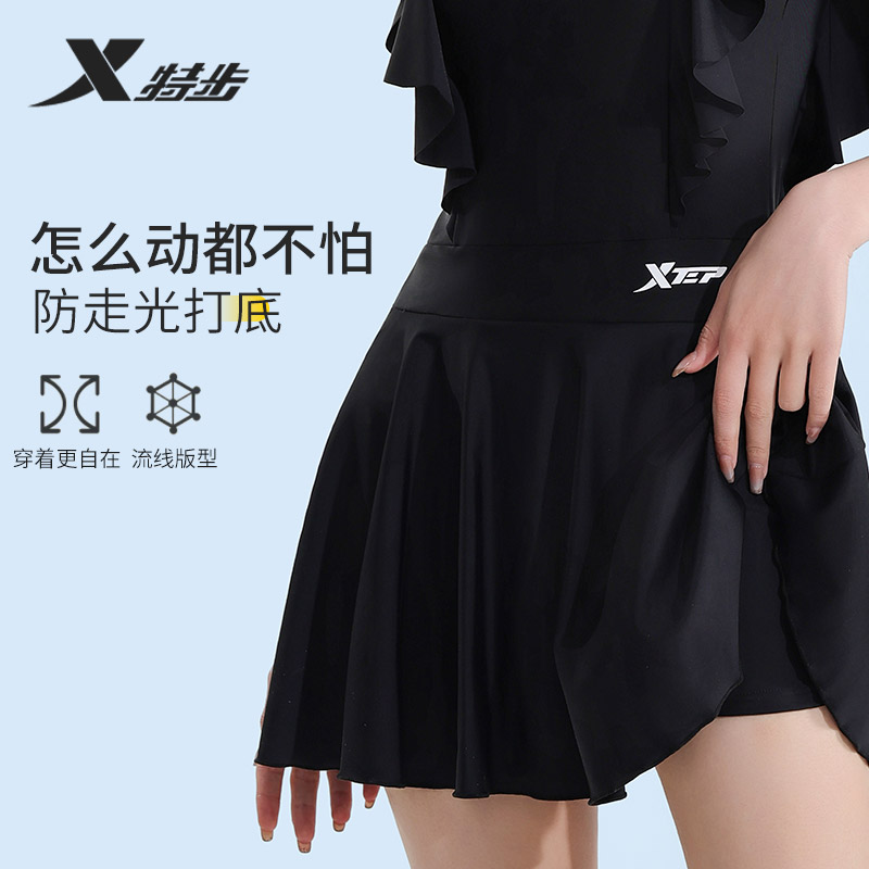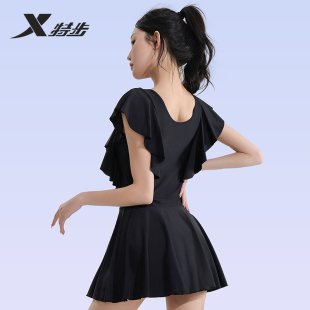 鸿星尔克泳衣女新款 连体保守平角遮肚显瘦初中生专业运动游泳馆装