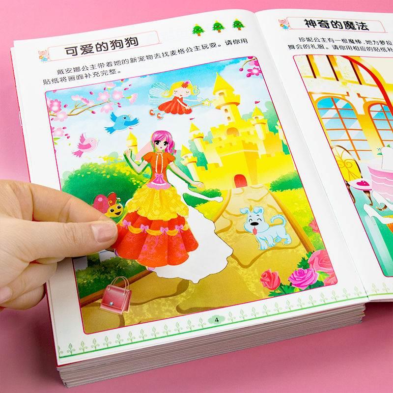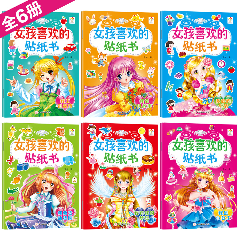 6岁小女孩小公主换装 贴纸书益智游戏手工粘贴纸幼儿园儿童专注力培养左右脑智力开发动手动脑贴贴画 贴纸书全套6册1 女孩喜欢