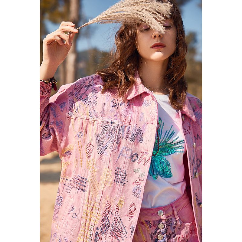 牛仔外套女 刺绣宽松休闲百搭舒适粉色长袖 莲灿裂帛春季 新商场同款