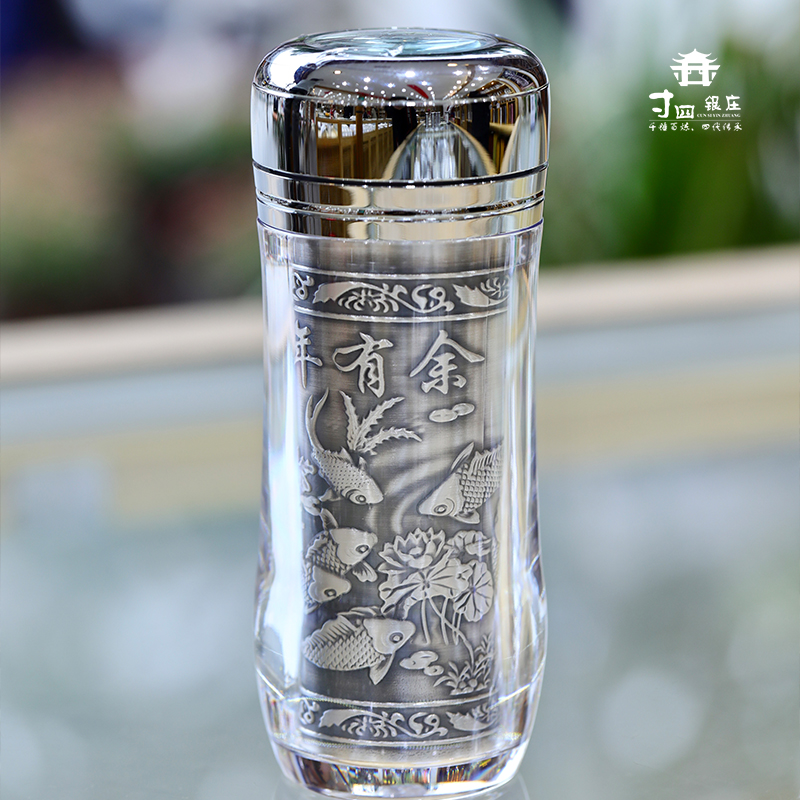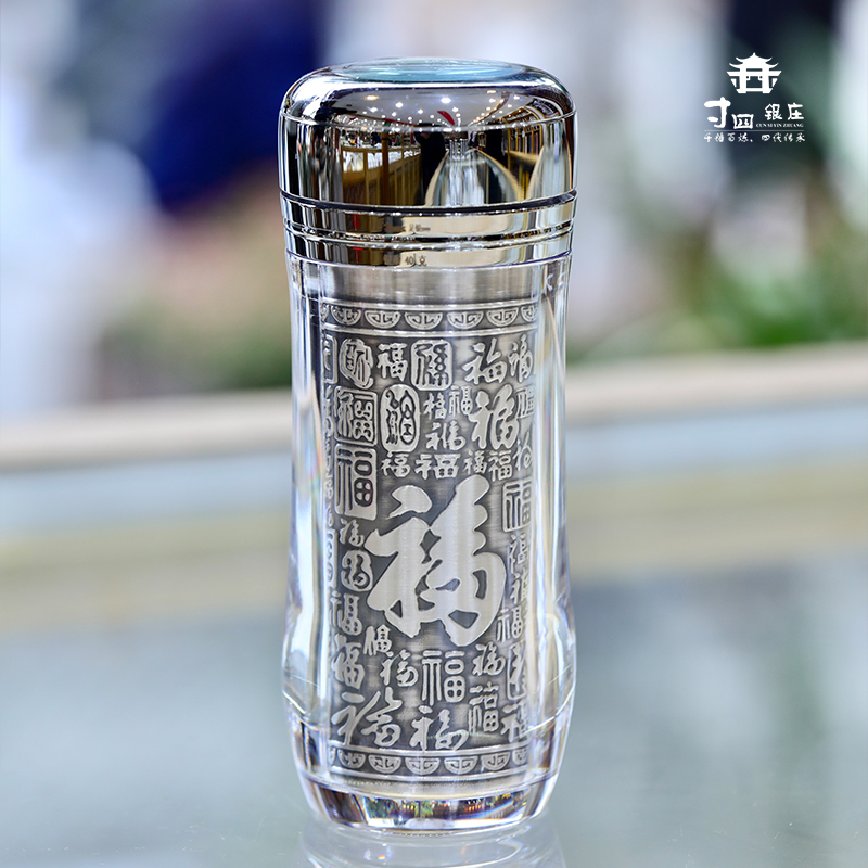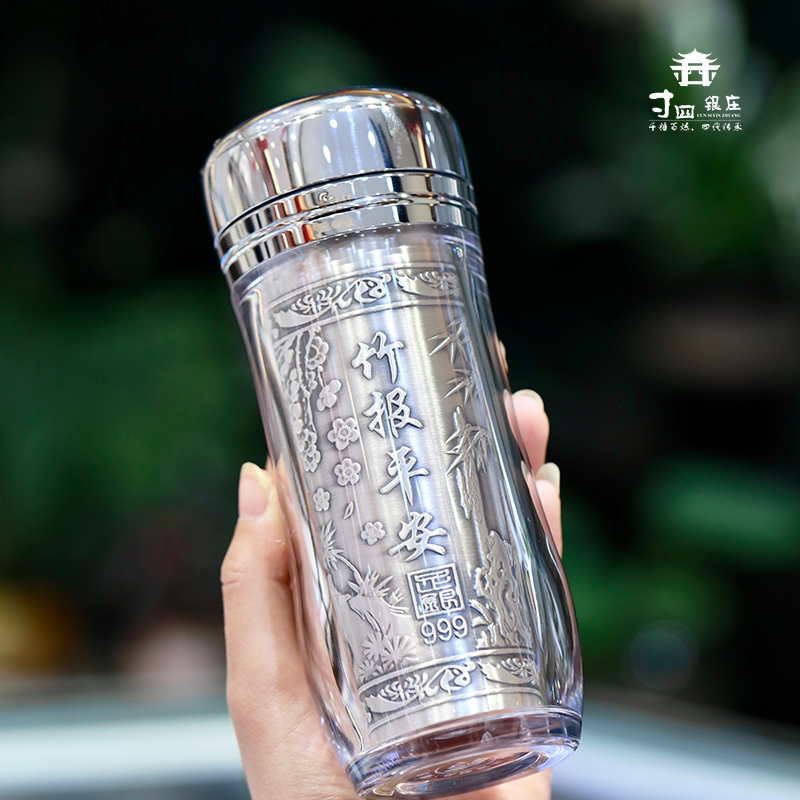 寸四银庄999足银内胆工艺复古浮雕雪花银水杯茶杯银杯
