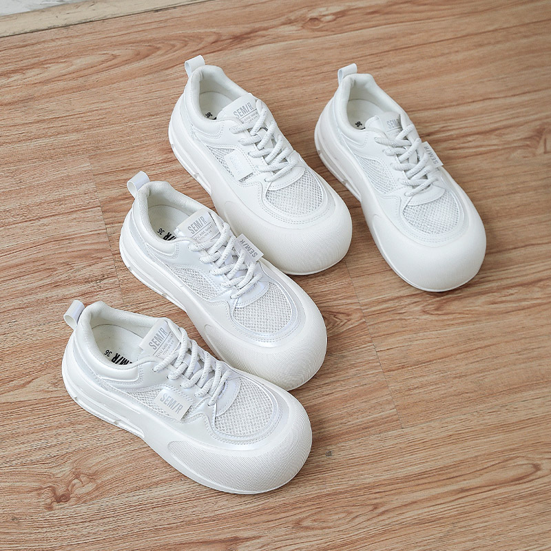 小白鞋 百搭透气网面鞋 女2025春秋新款 女款 休闲厚底板鞋 Semir女鞋