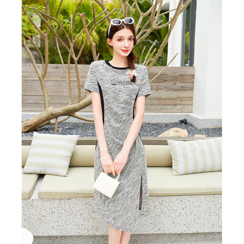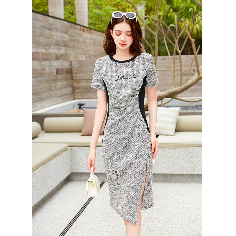 气质名媛修容连衣裙2025新款 超好看收腰显瘦高端精致开叉裙子 夏季