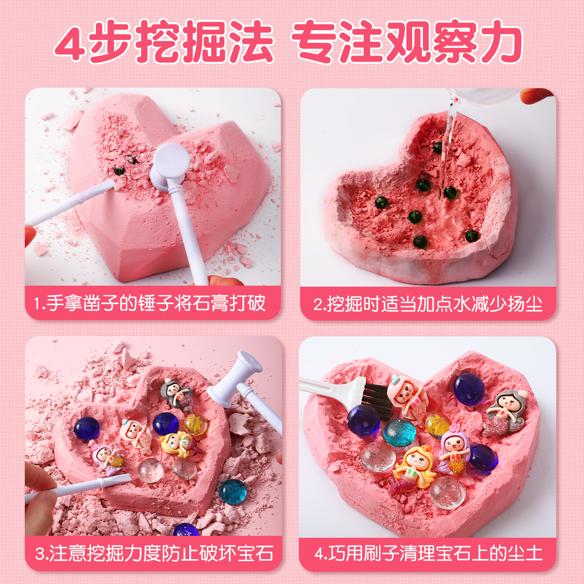 考古挖掘Q版 美人鱼玩具挖宝石儿童手工diy女孩子宝藏生日礼物盲盒