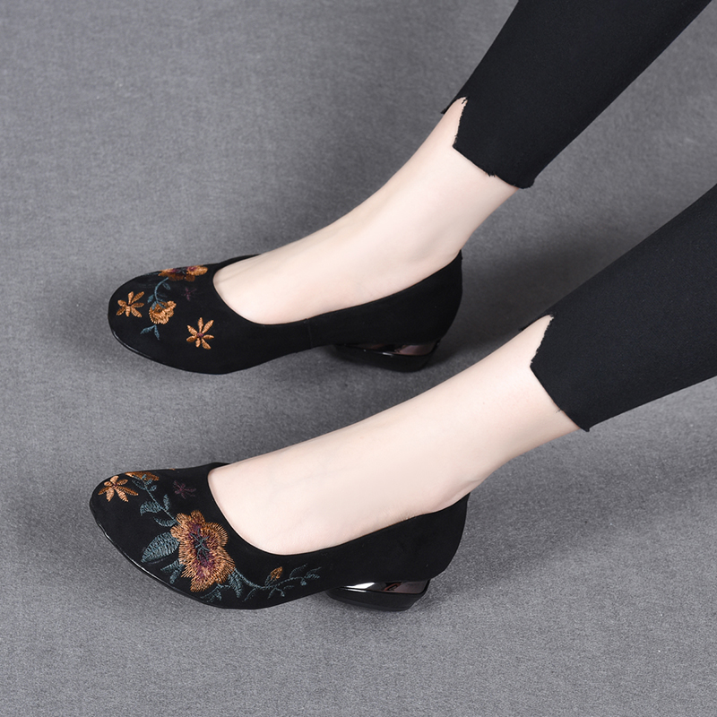 新款 康莉春季 高跟单鞋 女方头真皮通勤时尚 子 方扣浅口鞋 博主推荐